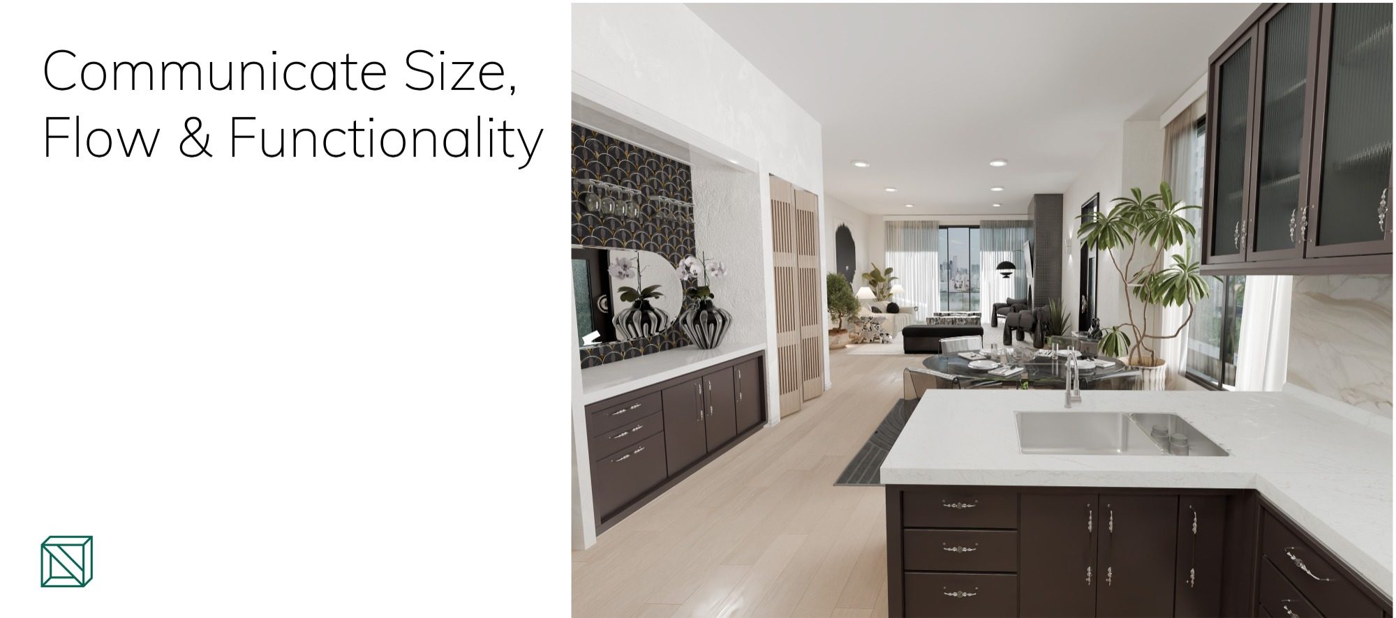Whether a still or an animation, this service focuses on communicating the real-world finishes, accurate sizing and location-specific lighting information in a cinematic way.
